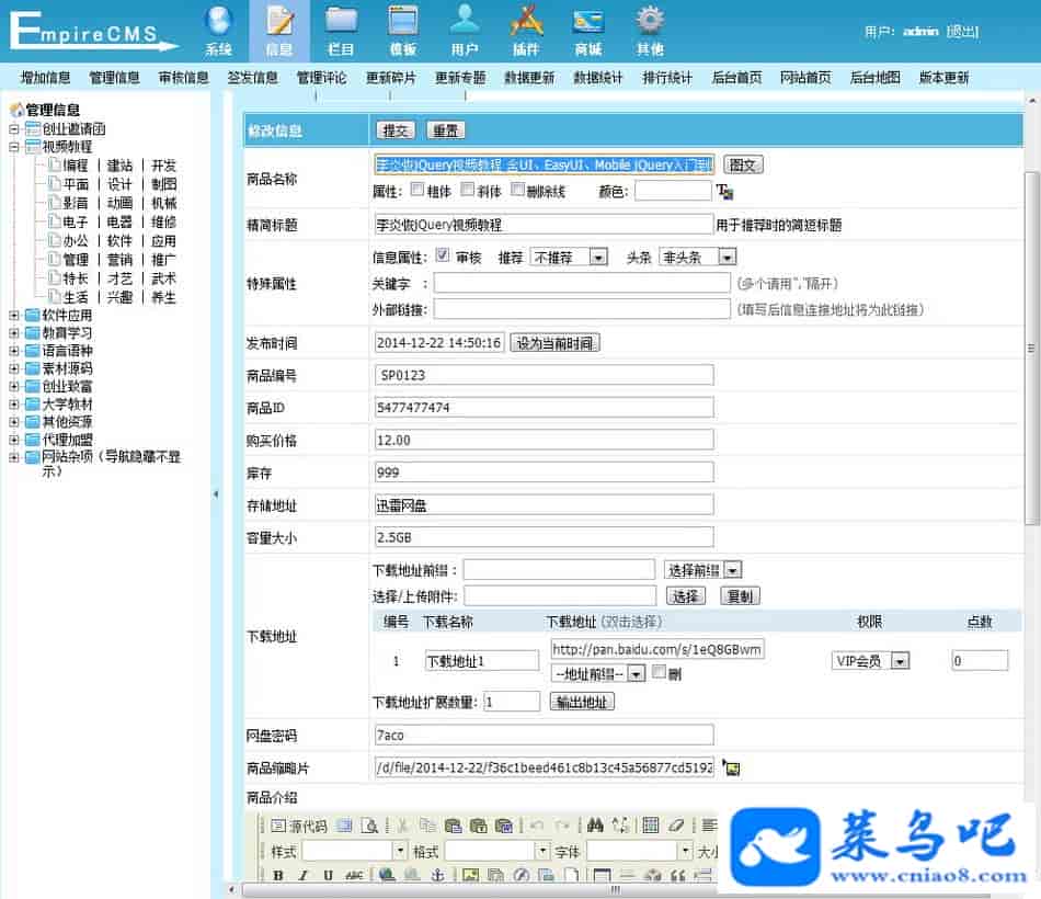 简介: 采用帝国CMS最新版仿制,适合网赚教程软件资料下载,虚拟货源代理平台,自带帝国CMS会员中心,下载可以设置权限和点数,商城完整