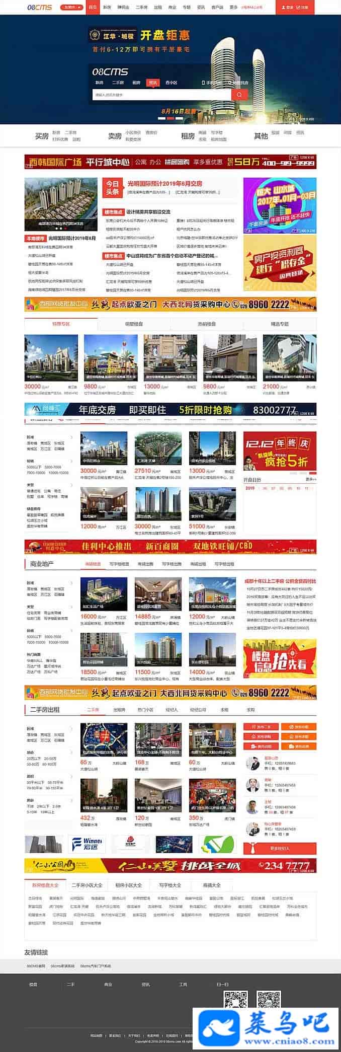 大型房产门户08cms 8.1多城市修正版 修正后台登录 功能强大界面大气 带手机端 真正可用