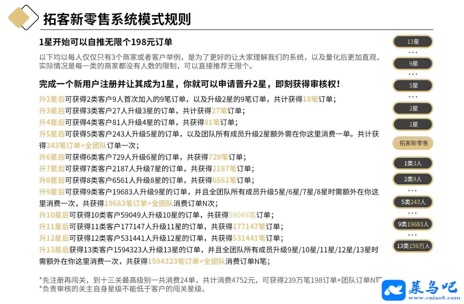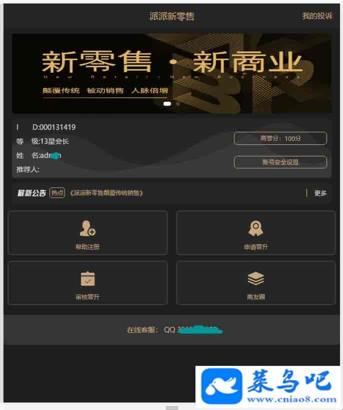 Thinkphp新版黑色UI新创客13星新零售系统源码 可封装app,创客新零售系统超级合伙人推荐好友团队推广源码支持帮助注册,可随时查看团队直推合伙人人数和一星以上合伙人人数按等级排序,新创客13星申请晋级、批准审核源码。本程序测试环境为CentOS7.4+宝塔6.9+Nginx 1.14+php5.4(必须是5.4)+mayql5.6+伪静态(Thinkphp)