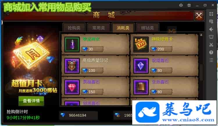 《全民奇迹》是一款3D动作类RPG多人在线手游。游戏采用Unity3D引擎打造,重现了端游的精美3D画面,更集成了装备养成、人物养成、Boss挑战、在线交易、战盟PK等海量内容。让玩家身临其境,仿佛回到那个“奇迹的年代”,带来一次真正的掌上奇迹之旅!很多人可能问我们的版本为什么卖这么贵,别人家的才几块钱?我们的版本都是完整开服全套的,和别人家几块钱的垃圾版本是不一样的,几块钱的只适合单机玩,买了以后自动发货,然后就扔个教程给你需要你自己安装,你能不能安装好就看自己的技术了。我们的版本都是包安装开服、充值架设等等。本店承诺永久包更新,有更新买家可联系免费领取更新补丁非虚拟机镜像,无需安装虚拟机,服务器配置需求低服务器系统需要64位的才能安装近期更新说明:更新1.9魔剑版本,结婚系统暂未更新增加安宁池,卡伦特,天梯竞技场,磨练之地,勇者战场,狼魂要塞,元素试炼增加现金卡,增加新武器,增加20阶橙色装备,15阶翅膀,15阶转身设置各副本BOSS,设置掉落钻石和魔晶和合成需要的物品黄金圣殿,boss之家,金币副本,水晶幻境,古战场均设置boss增加所有BOSS召唤石,增加单个钻石金币魔晶星魂数量增加所有装备合成20阶,全部装备均有礼包,所有boss战力加强修复魔剑无限放技能,竞技场没战报,精灵组合没战力,过图跳,战斗力等问题赠送GM工具,可修改装备设置、怪物设置、商城配置、任务设置、抢购设置、开服设置,角色管理,发送物品,GM命令等独家配套假人系统,让您的服人气爆满!增加合区工具更新一机二区,一个服务器内两个区,同一个apk上显示,无需多个服务器独家配套漂亮开服网站模版独家配套在线自动充值系统,玩家可自行在网站点击充值链接自动充值元宝独家开启开服、合服活动独家修复充值活动,首次充值、每日充值、累计充值 玩家充值即可领取独家修复VIP系统,玩家充值后VIP自动升级修复商城限时抢购,商城添加常用的物品购买独家修复玩游戏时突然就封号10分钟的bug赠送创建GM帐号教程,GM可发送游戏公告,发送装备,封号、修改等级等等功能注意:暂只支持电脑模拟器和安卓手机测试地址:http://q61.jywq8.net/测试地址:http://q60.jywq8.net/