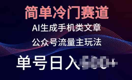 在这个信息爆炸的时代,手机作为人们生活中不可或缺的一部分,其相关的内容需求日益增长。而我们今天要介绍的项目,正是抓住了这一机遇,通过公众号平台创作手机类文章,实现了单号日入百元的收益。这个项目操作简单,赛道冷门,竞争力小,是小白也能轻松上手的新媒体赚钱秘诀。