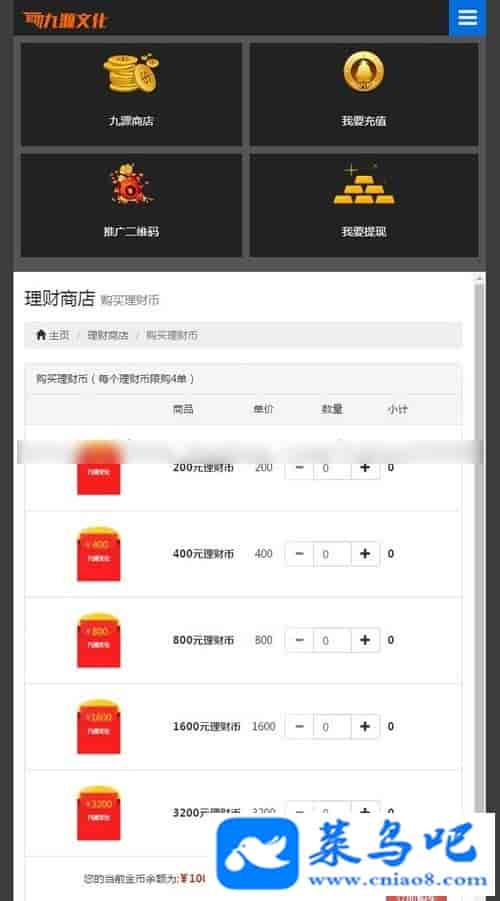 VIP2 购买 800 元理财包,每天分红 100 元, 10 天出局总共升值 1000 元
