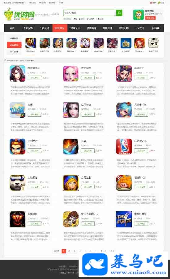 源码名称:仿优游网源码 手机游戏门户网站系统模版开发环境:帝国cms7.5空间支持:php+mysql赠送送火车头采集器(内置规则和模块),采集目标站优游网官网。PC演示地址:http://yoyou.96demo.com/手机演示地址:http://m-yoyou.96demo.com/