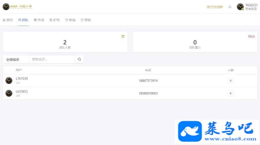 在这个基础上,如果商城里购买的矿机是赠送算力的,那么每一个有算力的人,代表着他或他的下级是有进行过消费的用户 本文来自菜鸟源码