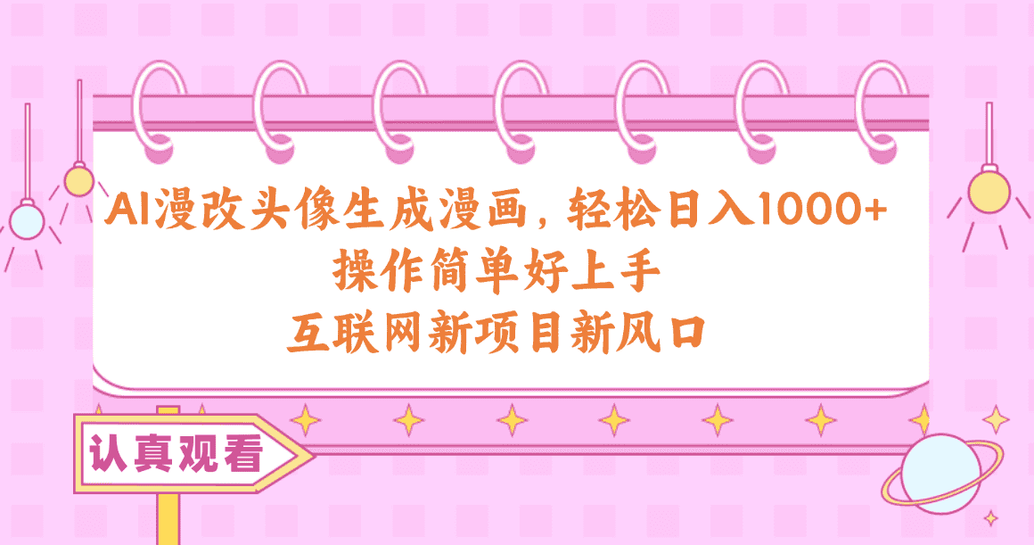 你是否厌倦了千篇一律的真人头像?想要尝试点新鲜、有趣的?那就来尝试一下AI漫画头像制作吧!不仅能让你的头像变得独一无二,更有可能让你在互联网上轻松日入千元!操作简单易上手,快来一起探索这个新风口吧!