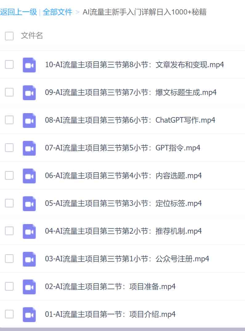 这个项目总共包含八节课程,每一节都涵盖了关键的知识和操作步骤。从项目介绍、准备到公众号注册、内容选题、GPT指令使用、ChatGPT写作技巧,再到爆款标题生成和变现策略,每一小节都紧密衔接,构建了一个完整的学习体系,使学员能够全面掌握公众号运营的关键要素。