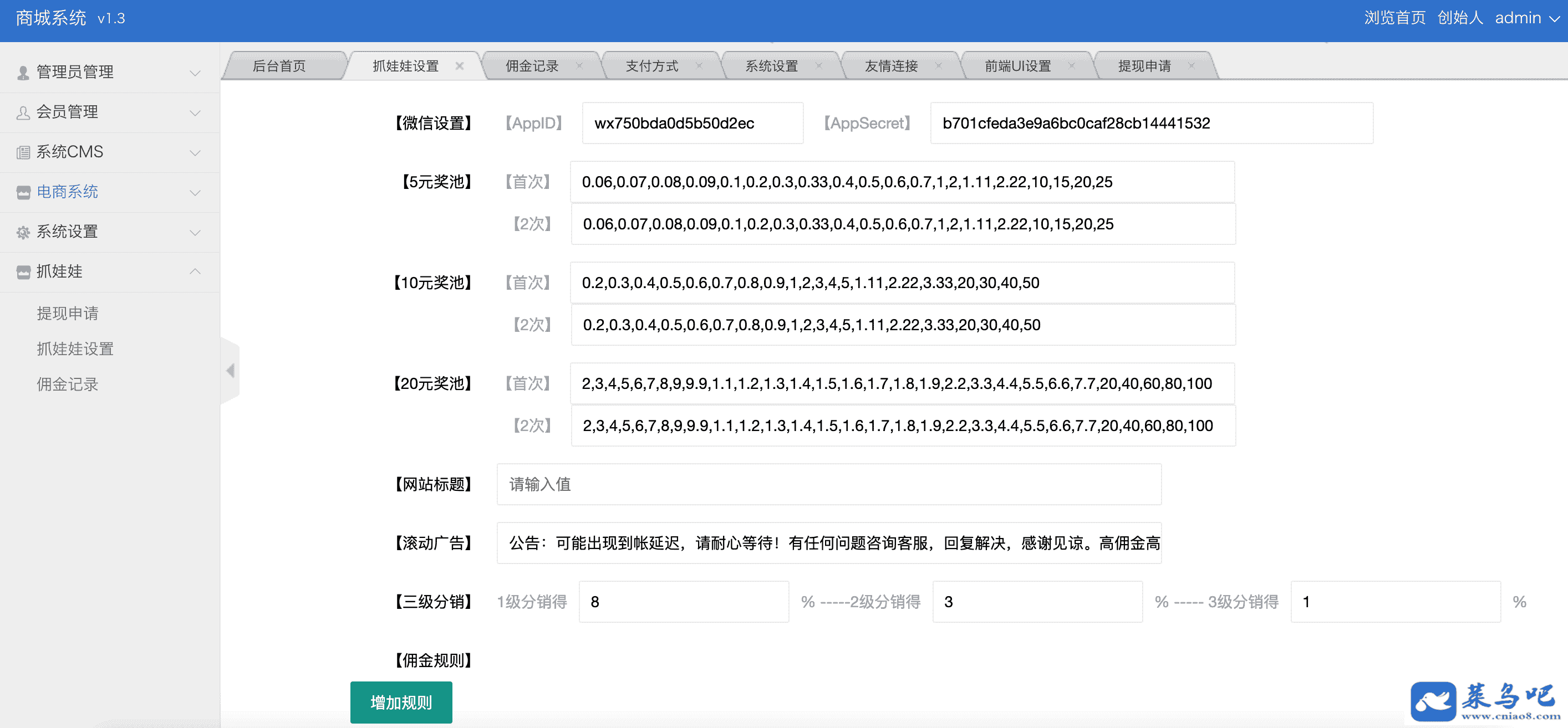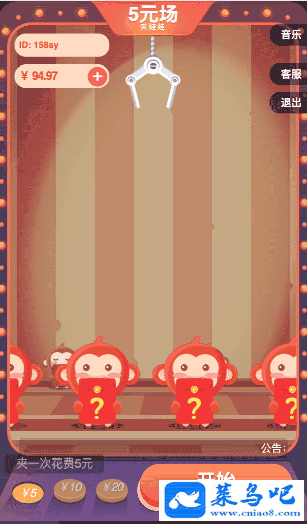 微信夹娃娃抓猴子赚钱游戏2.0源码|带三级分微信夹娃娃赚钱