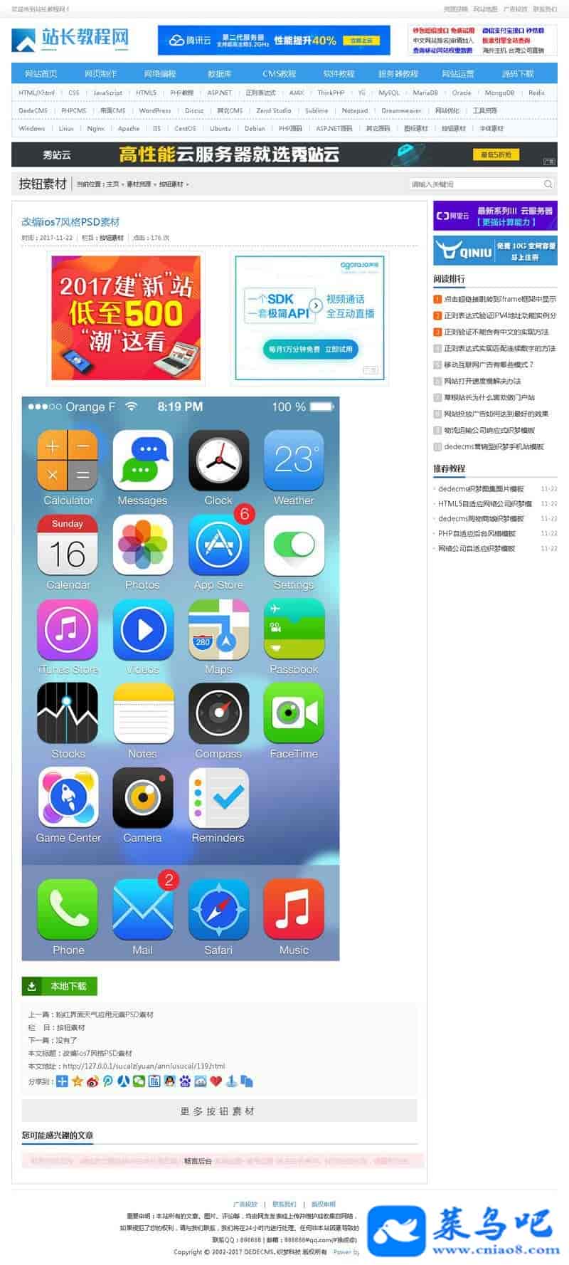 资源教程下载网 素材下载站织梦模板(带手机端)_素材下载站源码+全部数据可运营