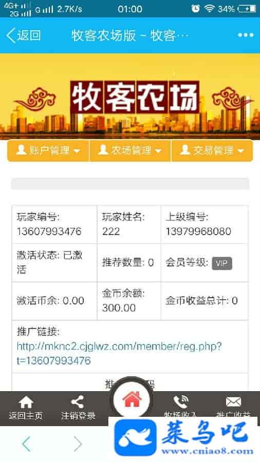 100 元注册微客农场激活账户(系统赠送50金币)即可以开启你的农场之旅啦!你不仅可以花很少的闲钱买下那些萌宠,你还可以享受这些萌宠每天给你带来的可观的金币收益!