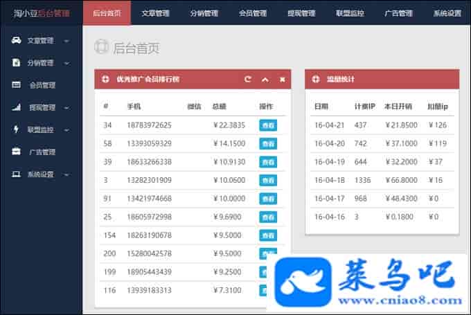 会员管理 (可自定义设置每个会员的独立扣量比例 扣量时间)