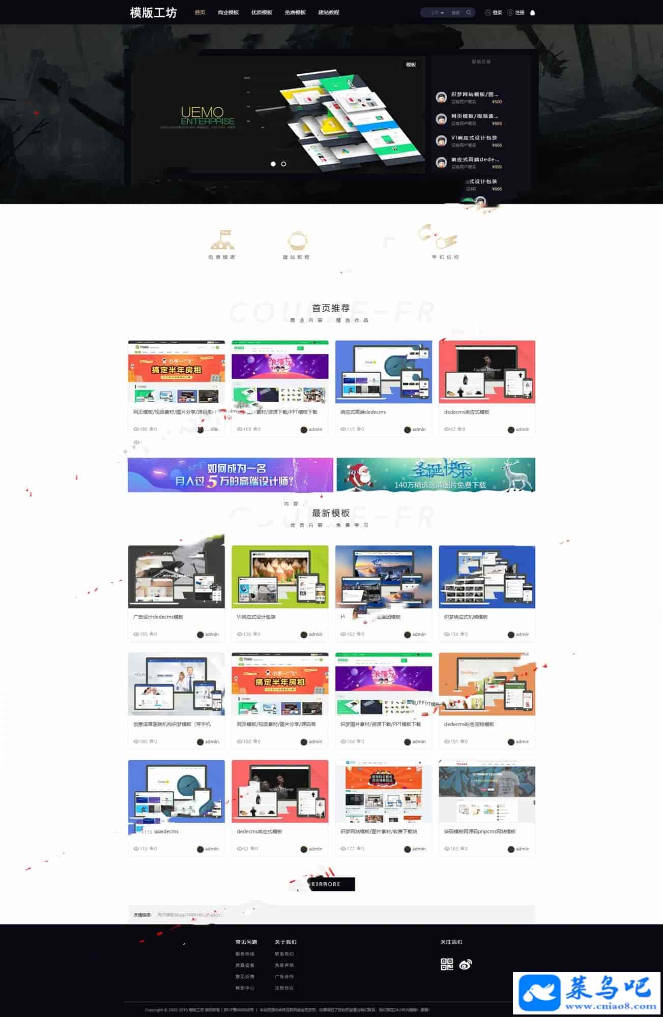 最新高仿模板工坊整站源码,程序该有的功能全部都有,会员中心功能,可对接第三方支付宝或者微信支付!带有WAP手机端,可以自适应!程序安装简单,带安装教程