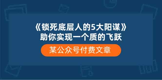 某公众号付费文章《锁死底层人的5大阳谋》助你实现一个质的飞跃