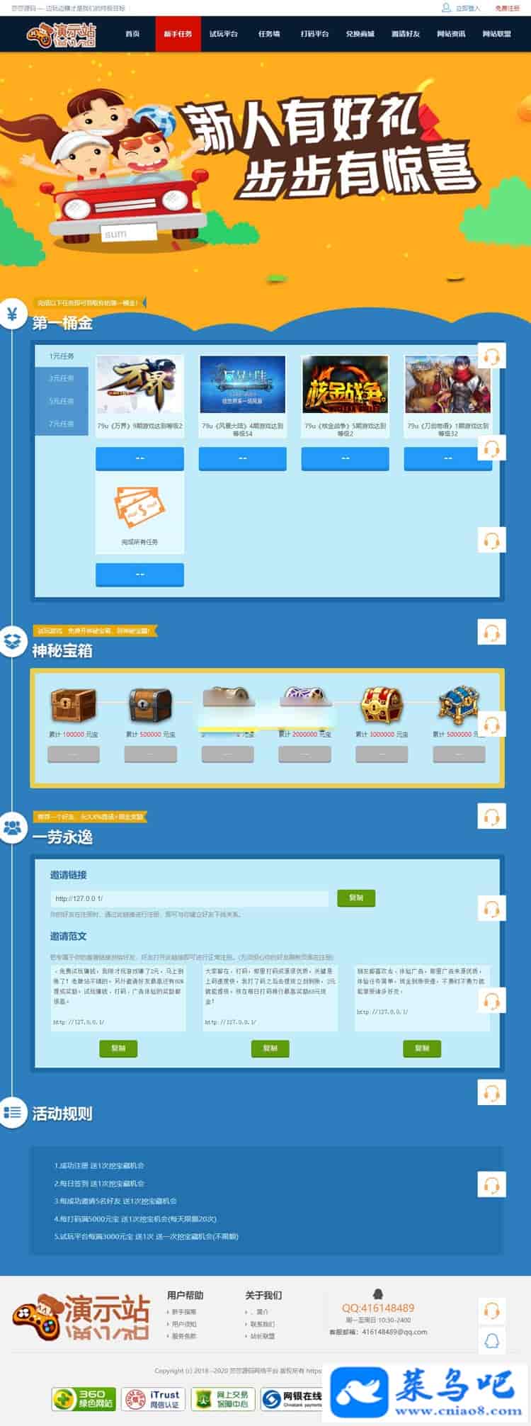 2019PHP 试玩打码赚钱平台源码试玩平台打码平台邀请返利新手任务积分商城对接广告联盟,这类型的试玩平台是比较赚钱的,因为游戏一直是一个暴力行业,所以催生了游戏试玩这一行业,可以邀请会员,实现层层返利,做任务赚钱,有需要的可以下载研究,默认里面带详细的对接教程及安装教程!
