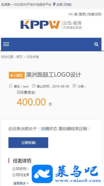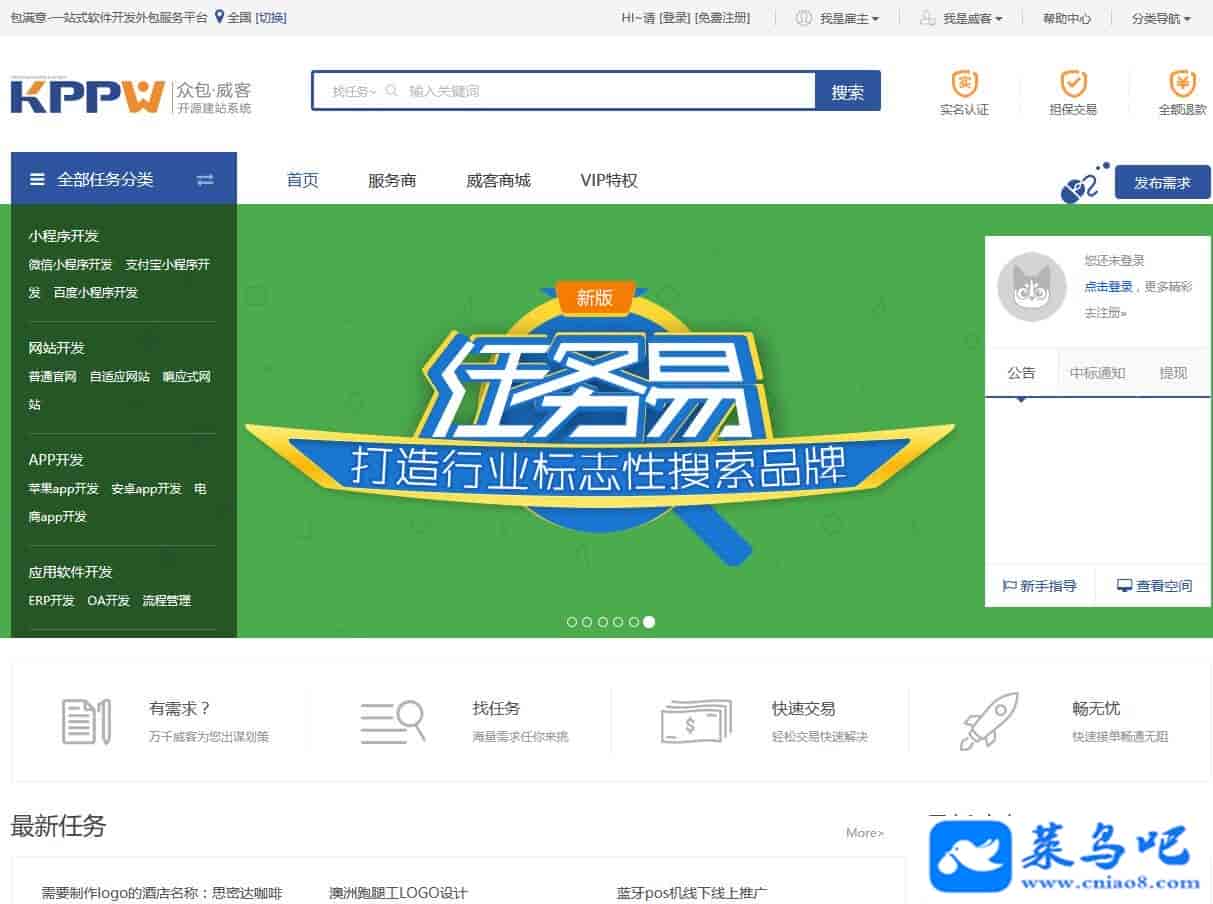 客客kppw3.3威客网众包发布任务接单平台运营版,一站式软件开发外包服务平台开源响应式源码赠送安装指导文档+二次开发手册