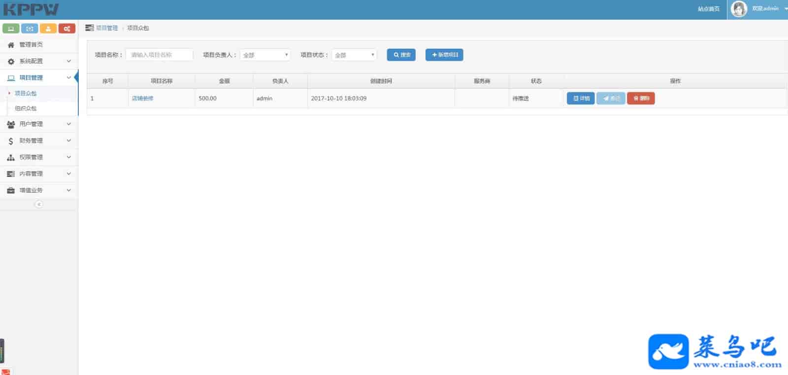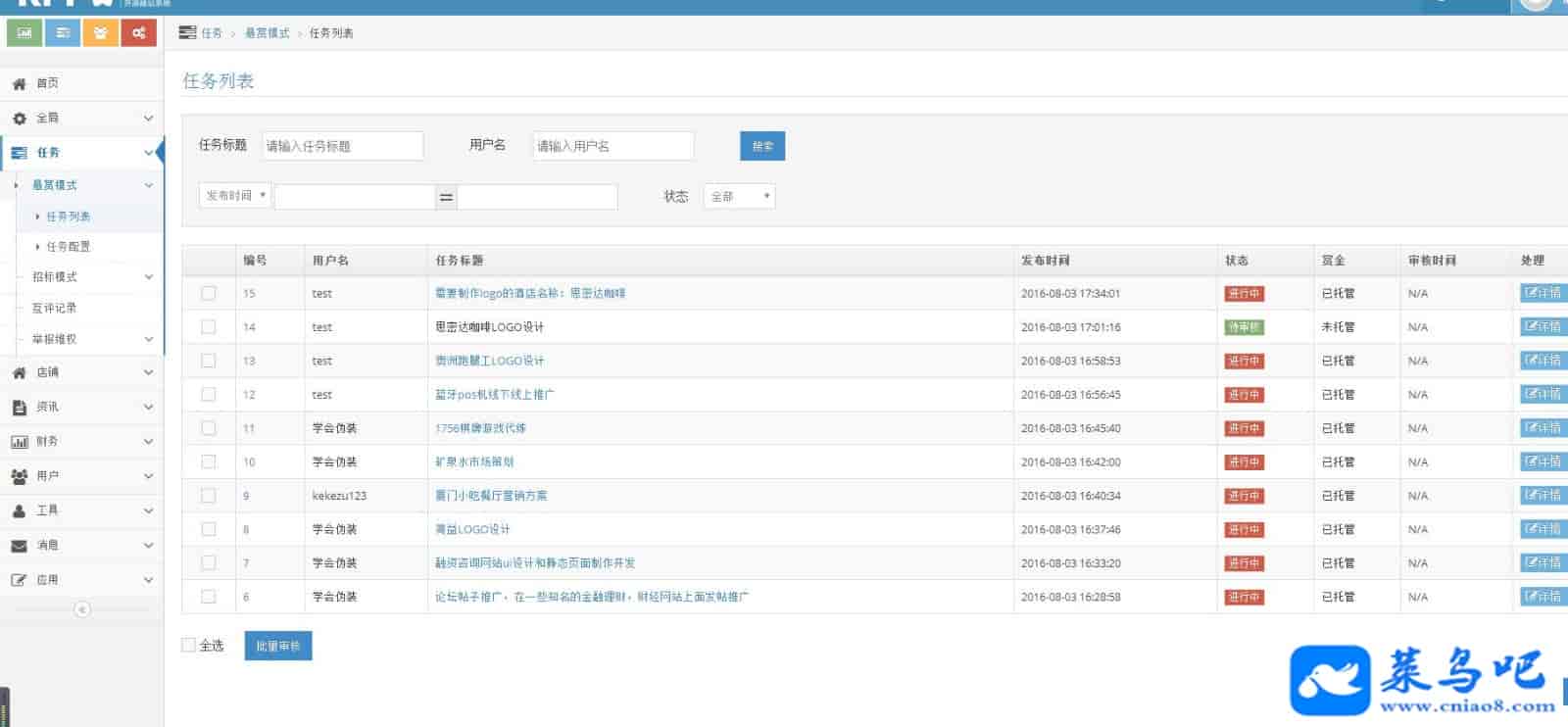 后台管理包括:项目众包,数据直观统计、财务管理、任务审核、支付宝和微信在线支付配置