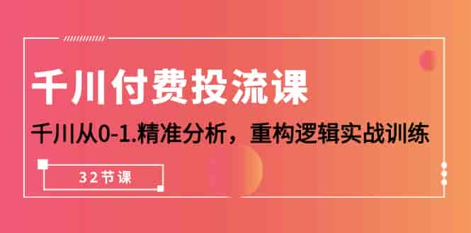 2024千川付费投流课,千川从0-1.精准分析,重构逻辑实战训练(32节课)