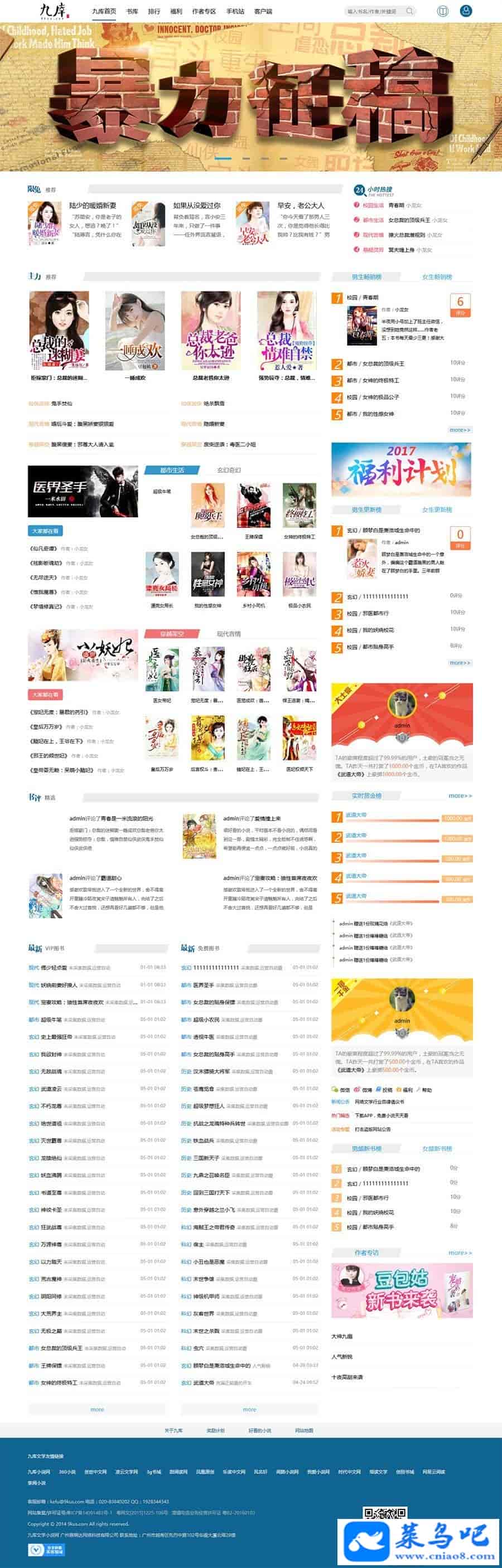 最新仿九库文学网小说程序源码分享,帝国CMS内核二次开发版,支付接口+WAP手机端功能,手机小说 小说程序+WAP+原生APP+火车头采集送规则。