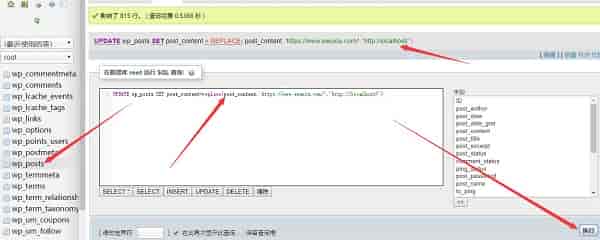 现在已经可以访问了,但是图片可能还无法显示,原因是网站的图片引用地址还是源站的,我们还需要到数据库里,选中数据表:WP_POSTS ,在点击 SQL。