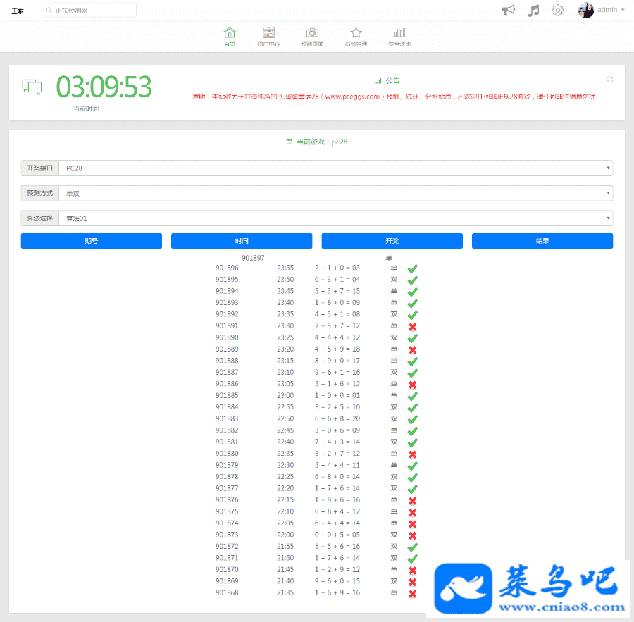 内置8种算法 游戏模式8种(单双、大小、组合、杀组合、3N/4N/5N)