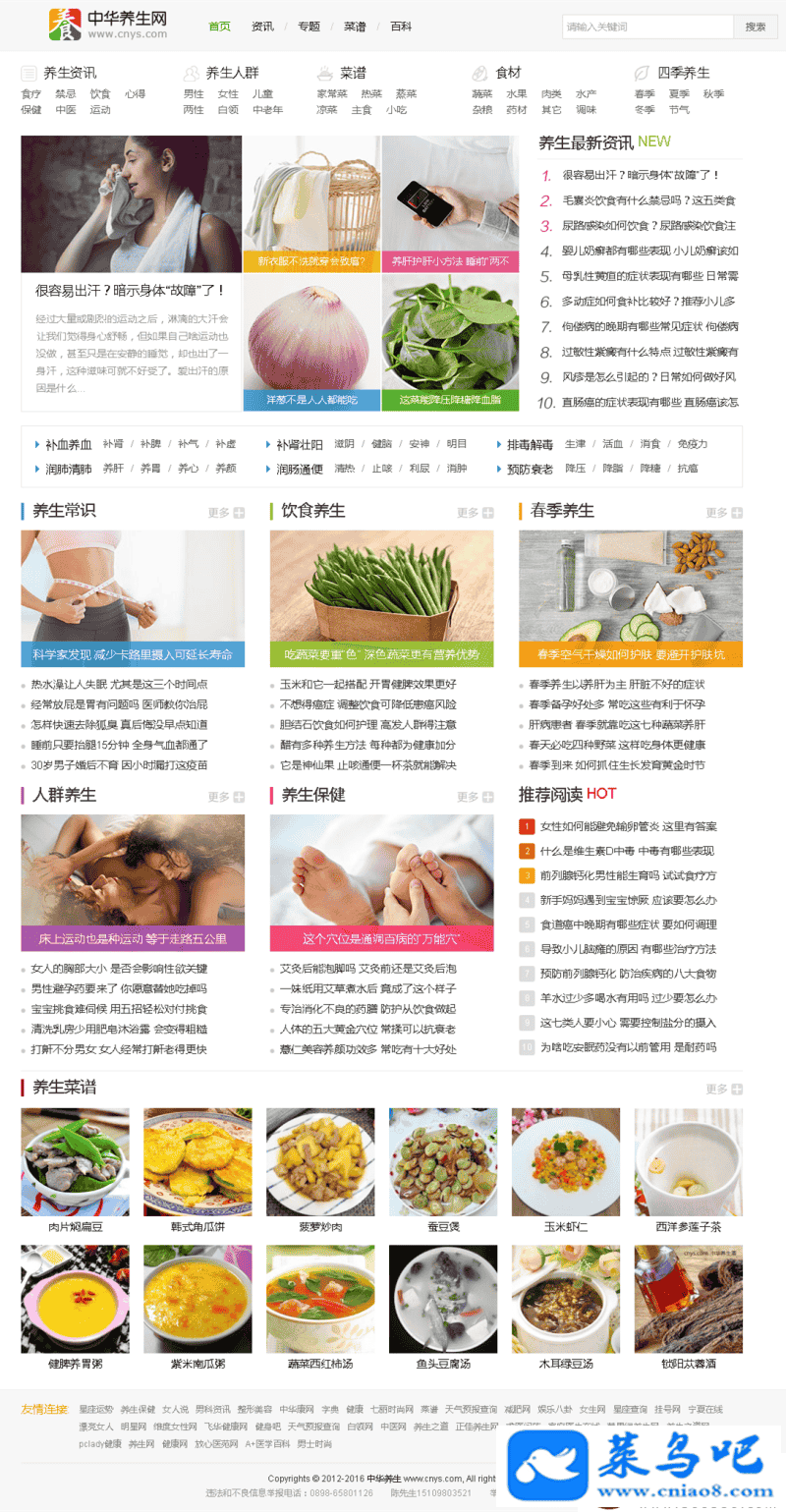 仿中华养生网整站源码 大气养生网源码下载 带火车头采集 手机版 PHP大气养生门户资讯网站源码下载
