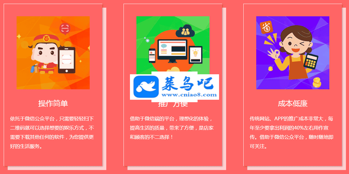 黑猫吃喝玩乐携手地方公众号打造“精准用户+同城商户+微信支付”的营销新模式,打造区域化商圈,旨在帮助运营商快速提升用户粘度,加速粉丝变现、率先占领当地移动市场、进行运营数据分析、实现粉丝精准营销,开启地方公众号生态盈利新模式。