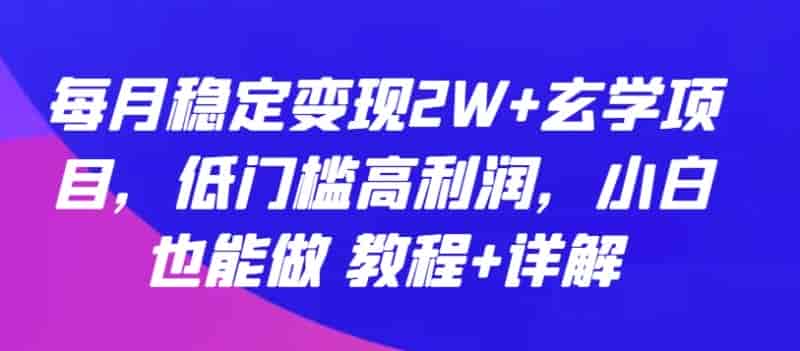 玄学项目:每月稳定变现2W+,低门槛高利润,小白也能做 教程+详解