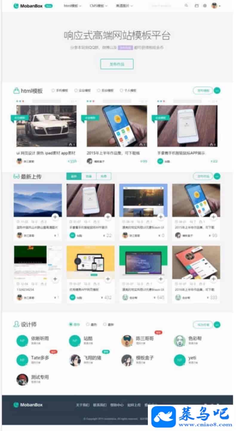 高仿模板盒子VIP付费素材资源类整站源码打包 带后台地址+支付宝接口+推广,最新高仿模板盒子VIP付费素材资源类整站源码打包,适用于图片素材/数字交易平台/模板下载系统/VIP源码类网站使用,本套源码采用php开发功能强大,支持有个人主页,支付宝接口,销售统计等,前端布局采用响应式布局,自适应手机等多终端设备,模板设计风格非常主流和国外模板相差无几,适用于:高端设计网站,高端数字化虚拟交易平台使用!
