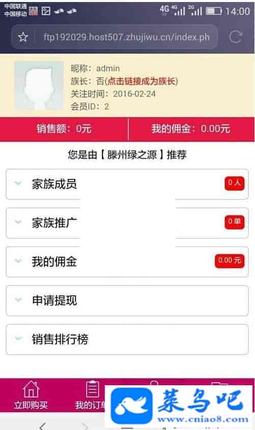 安装环境:php+mysql 推荐使用菜鸟云yun.cniao8.com