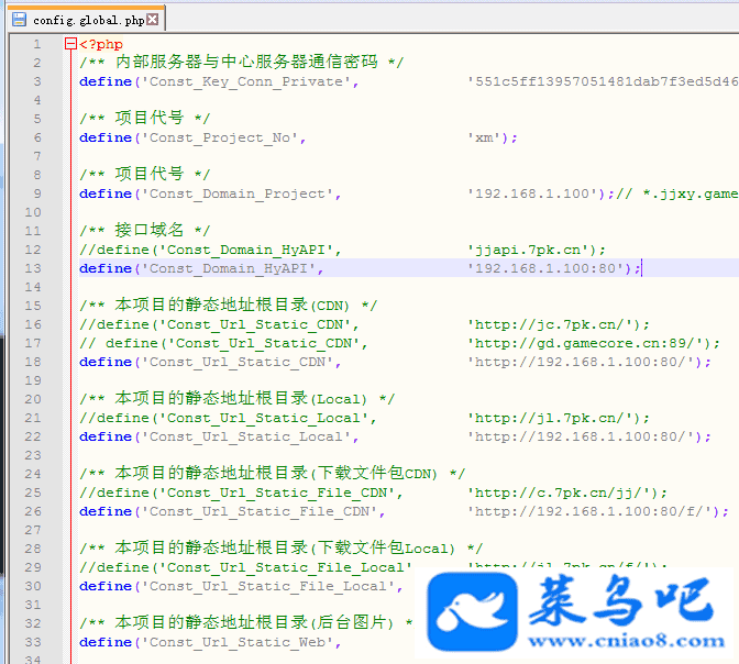 修改:phpStudy\WWW\xm_php_api\config下的config.global文件把里面IP改成自己的就OK了