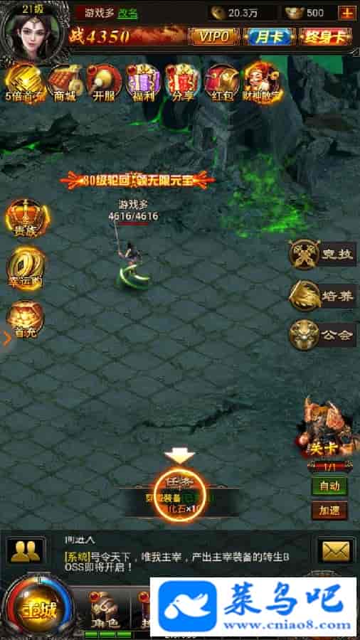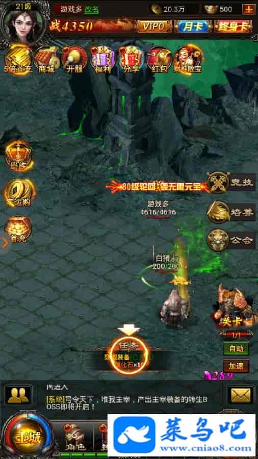 非常经典的挂机类H5传奇,2018年最新版本 非常耐玩,支持安卓手机 电脑模拟器 平板等都支持!IOS未知没测试,已更新百战套装,觉醒装备,精魂,等等!此端完美度达95%,已经是不错的商业端了!