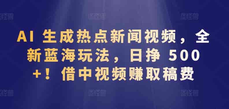 借中视频赚取稿费日挣 500+,AI 生成热点新闻视频,全新蓝海玩法