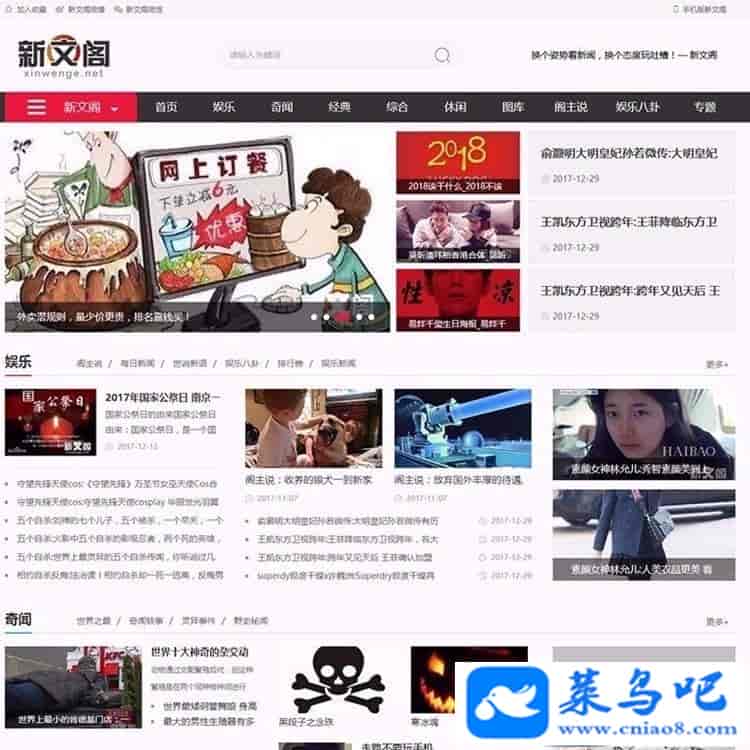源码介绍:新文阁集腾讯、网易、搜狐、凤凰、新浪、等热门图片视频新闻于一体。利用本源码框架可用来做科技新闻,本地门户新闻,手机测评导购类的新闻站等。