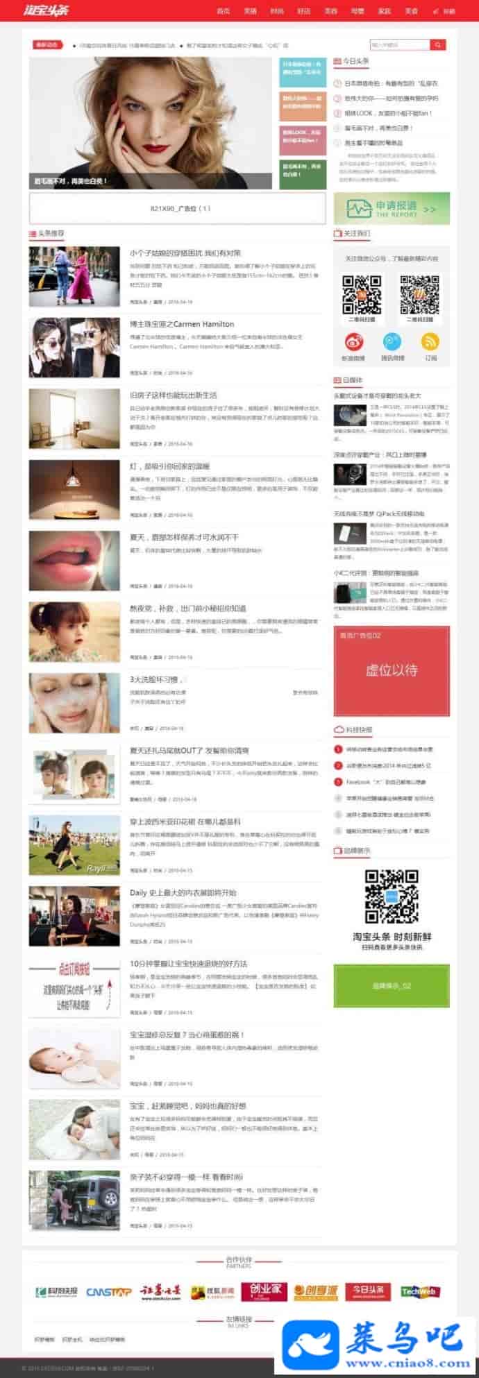 织梦最新内核开发的模板,该模板属于新闻资讯博客、自媒体、淘宝头条类企业使用