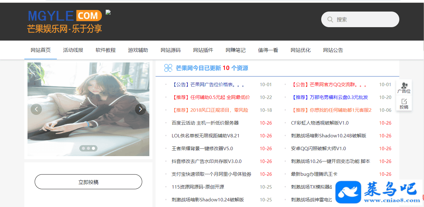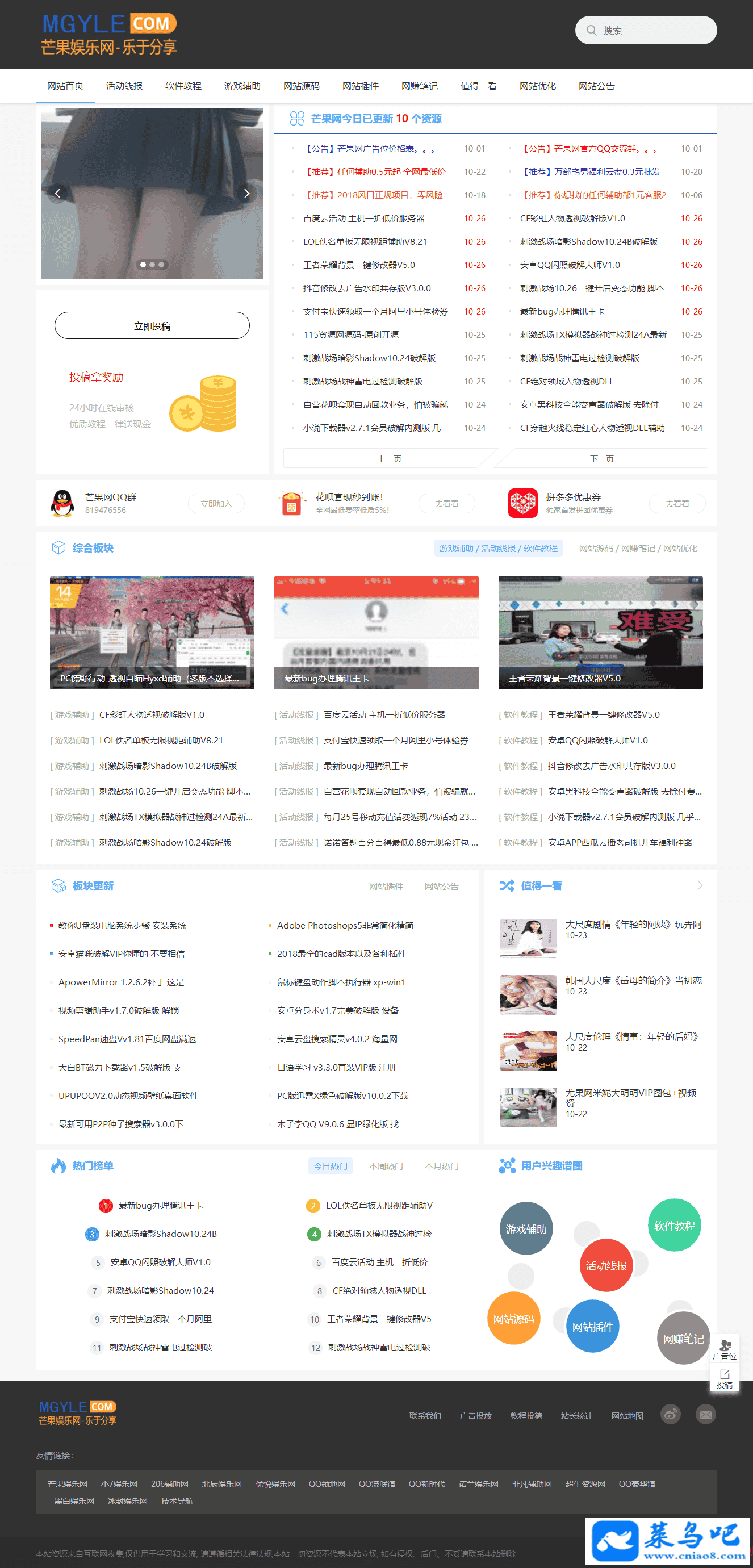 [PHP源码] 《芒果娱乐网》资源分享网站源码+文章数据整站打包下载