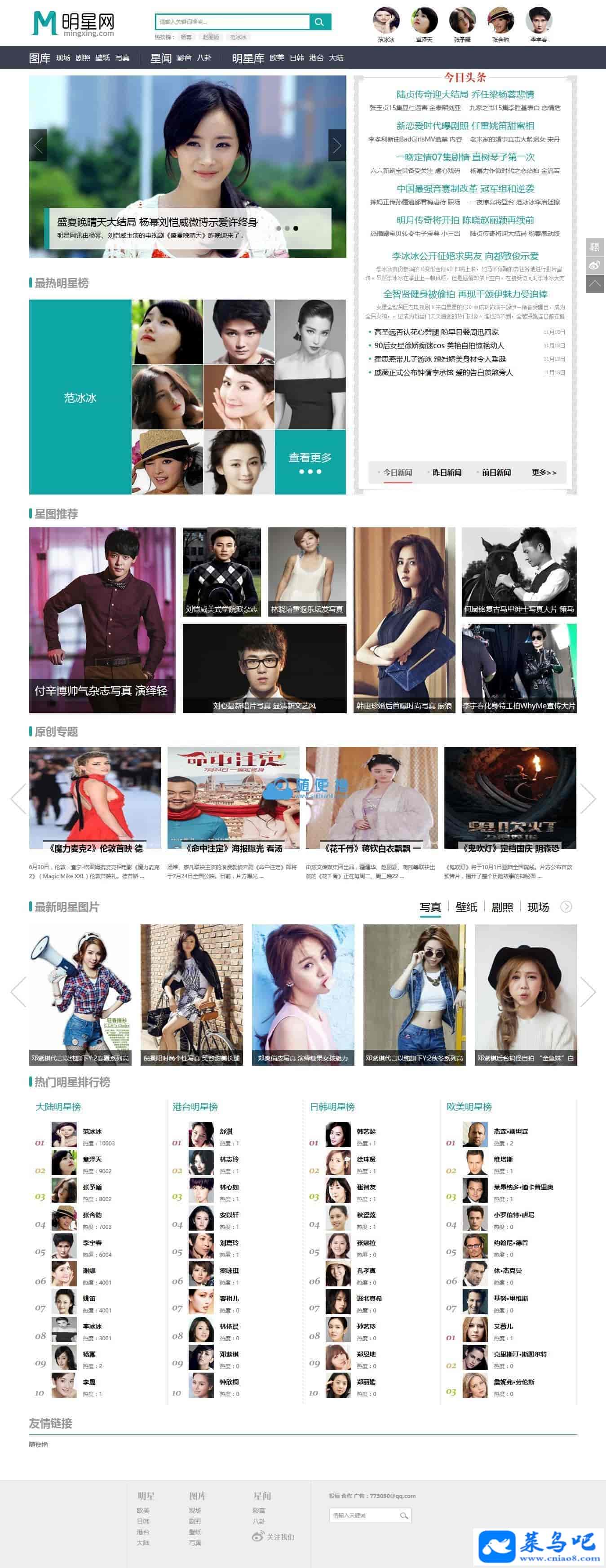 明星网源码,92game仿制明星网源码,娱乐资讯网站源码,娱乐明星网站源码下载,这款源码在电脑里躺了很久了,今天分享给荣誉会员们,本源码以帝国cms为内核,仿制明星网,全站1:1仿制,简单大气,是一款不可多得的娱乐新闻源码,92GAME最新作品,帝国cms安全没话说,这款源码界面也没话说!