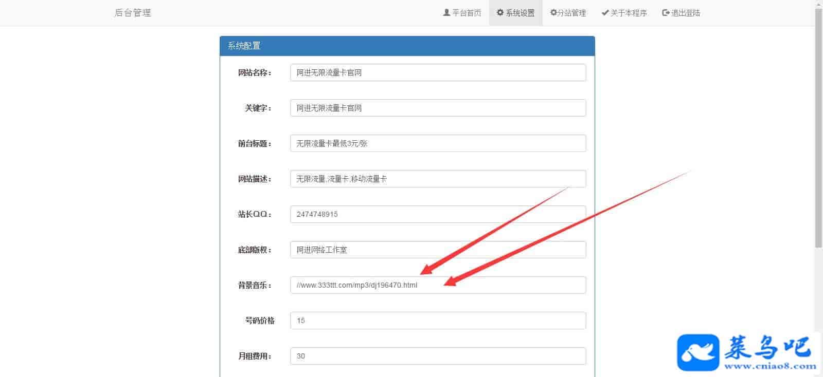 9.新增“站长QQ”设置