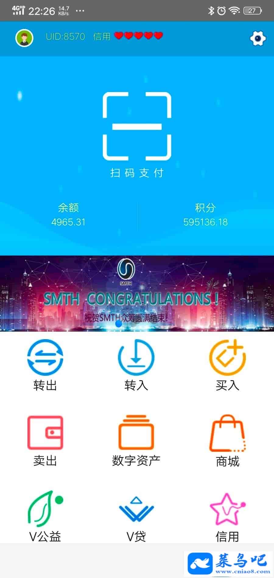 【积分】:余额没流通(转出、支付)一次,速通宝系统会赠送100%的积分,积分是余额流通产生的价值。