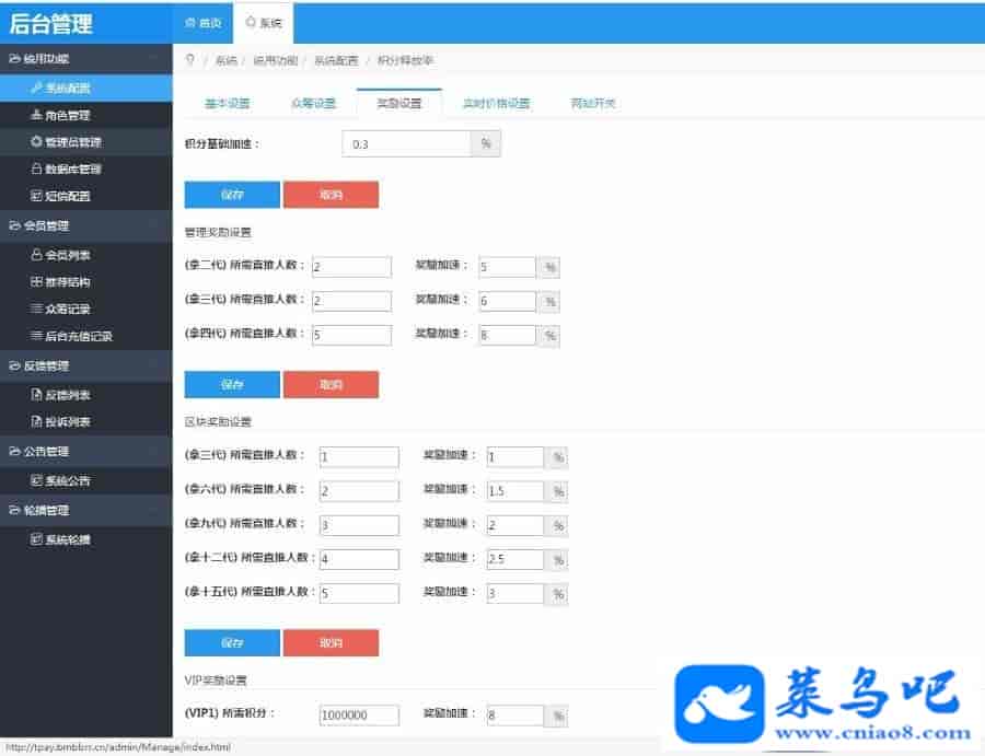【VIP会员】:享受15代内余额流通的8%加入到积分账户。