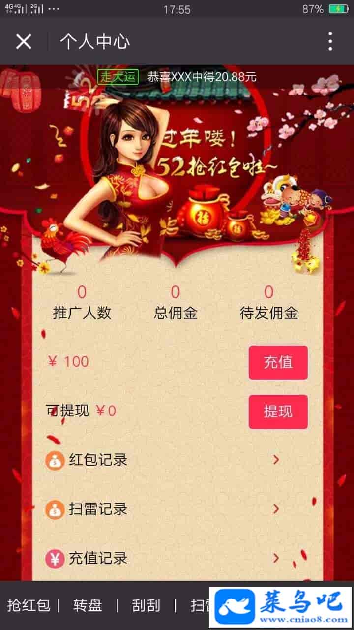 7、抽中红包信息可滚动显示、可添加虚拟信息。