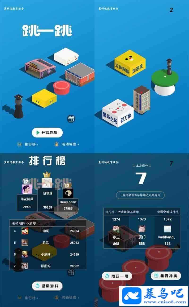 H5跳一跳3D在线游戏,品牌推广的趣味小游戏或者自建在线抽奖游戏,集聚人气,提高知名度。跳一跳是最近很火的网络小游戏,值得深入学习和研究。