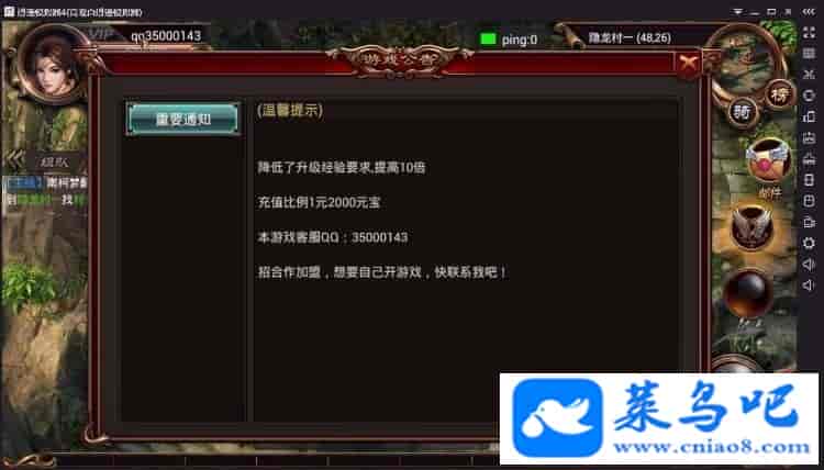 《烈焰遮天》是一款ARPG手机游戏大作。全景3D超清画面,感受震撼的视觉盛宴。更炫酷的装备、更暴爽的PK打斗、更华丽的技能组合,全屏秒杀。原味的拉锯PK、热血激烈的攻城战让你体验天马行空的顶级游戏盛宴非虚拟机镜像,无需安装虚拟机,服务器配置需求低(不包安装)服务器系统需要64位的才能安装最新修复充值礼包和首充礼包最新修复暗黑二层进不去的bug独家修复注册系统,注册完成后不会提示帐号已存在带攻城战系统,坐骑系统,翅膀系统,挖宝系统。