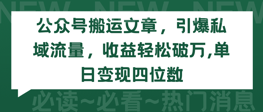 2024年公众号搬运文章,引爆私域流量,收益轻松破万,单日变现四位数