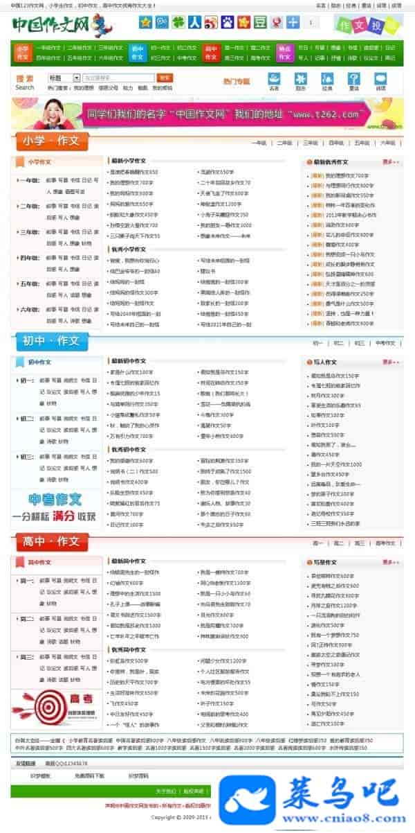 织梦CMS仿某中国作文网源码,文章类网站源码+数据采集,采集可能会失效哦,非常漂亮的模板程序。模板div+css设计,符合W3C标准,已做好SEO优化,收录爆增,排名好,模板清爽,漂亮。本站修复了列表页错位,现在源码完整无错位。文章类网站源码比较适合一些新手搭建。文章类网站源码占用空间小加载速度快。dede程序安装简单容易上手
