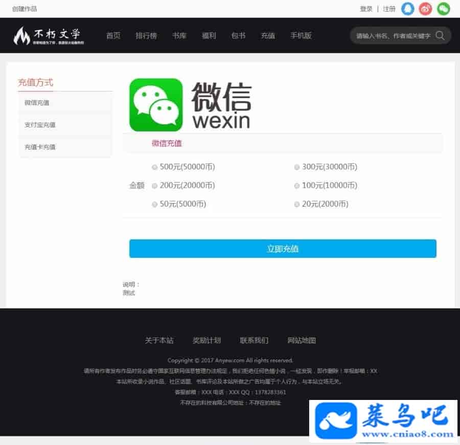支持打赏送礼物推荐票功能作者vip签约字数分成用户打赏记录充值记录同时制作了二维码收款对于没有支付接口的朋友们使用粉丝共享榜作者信息等.