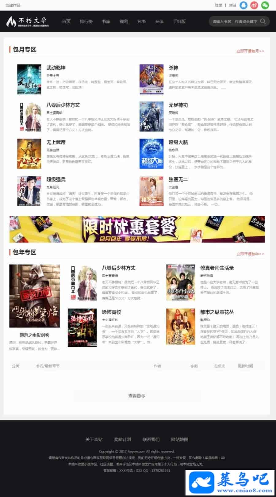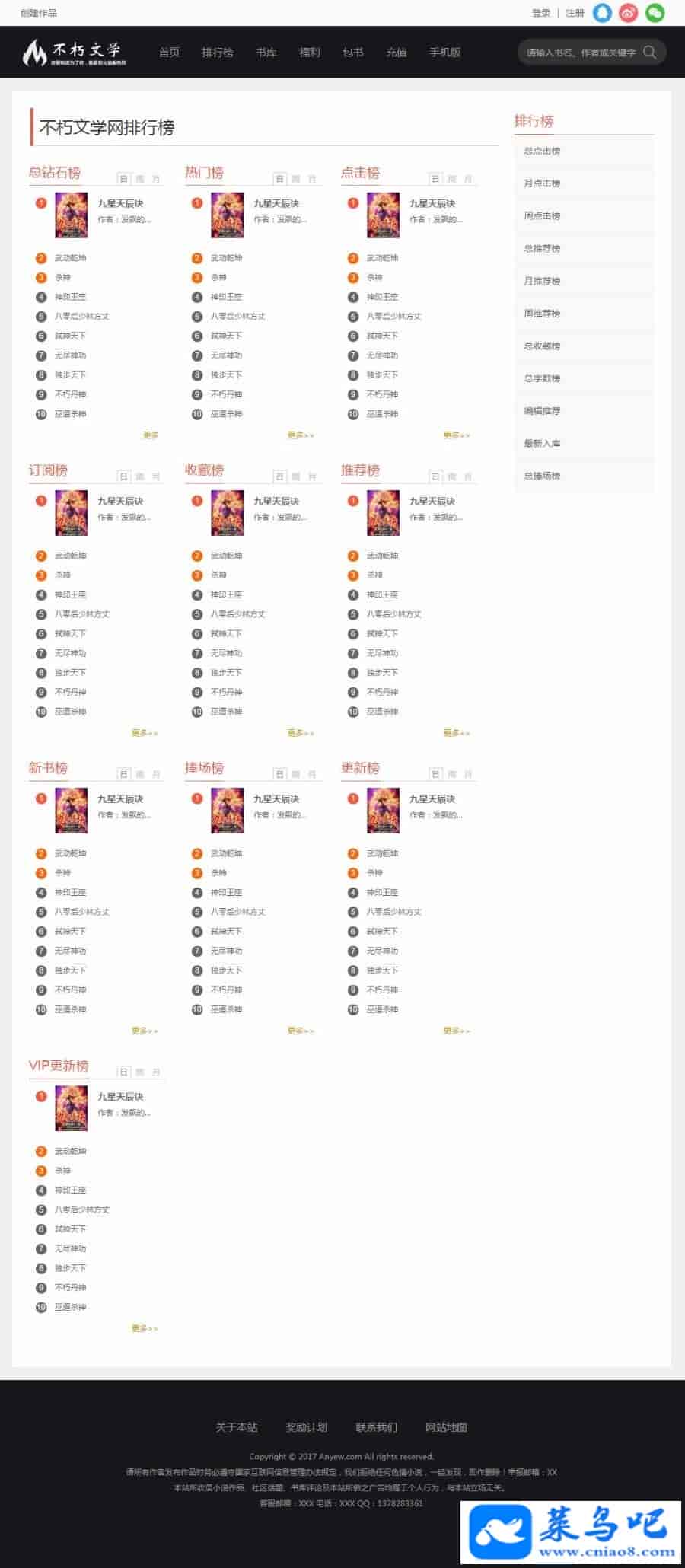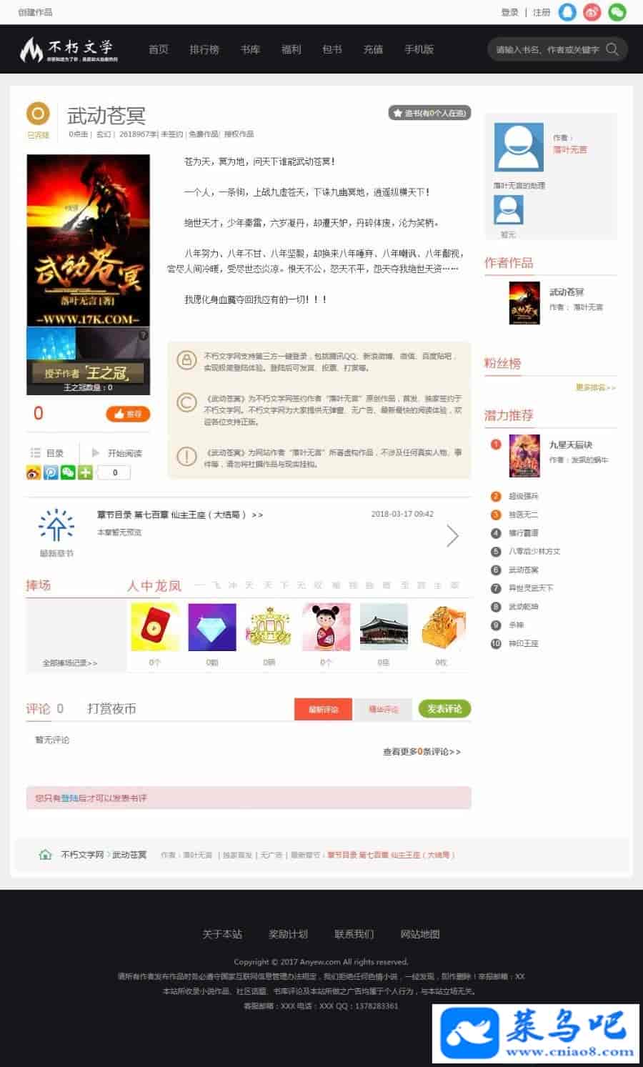 源码经过优化加快访问速度,优化作者中心完美支持原创小说站点也可采集