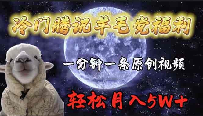大家好,今天给大家分享一个《冷门腾讯羊毛党福利,1分钟中一条原创视频,轻松月入50000 》项目。
