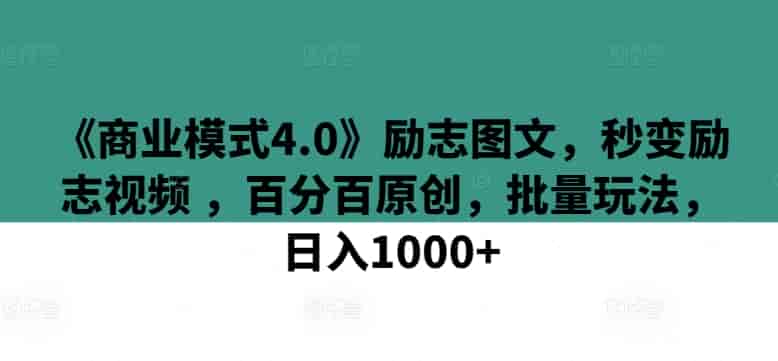 《商业模式4.0》励志图文,秒变励志视频 ,百分百原创,批量玩法,日入1000+【揭秘】
