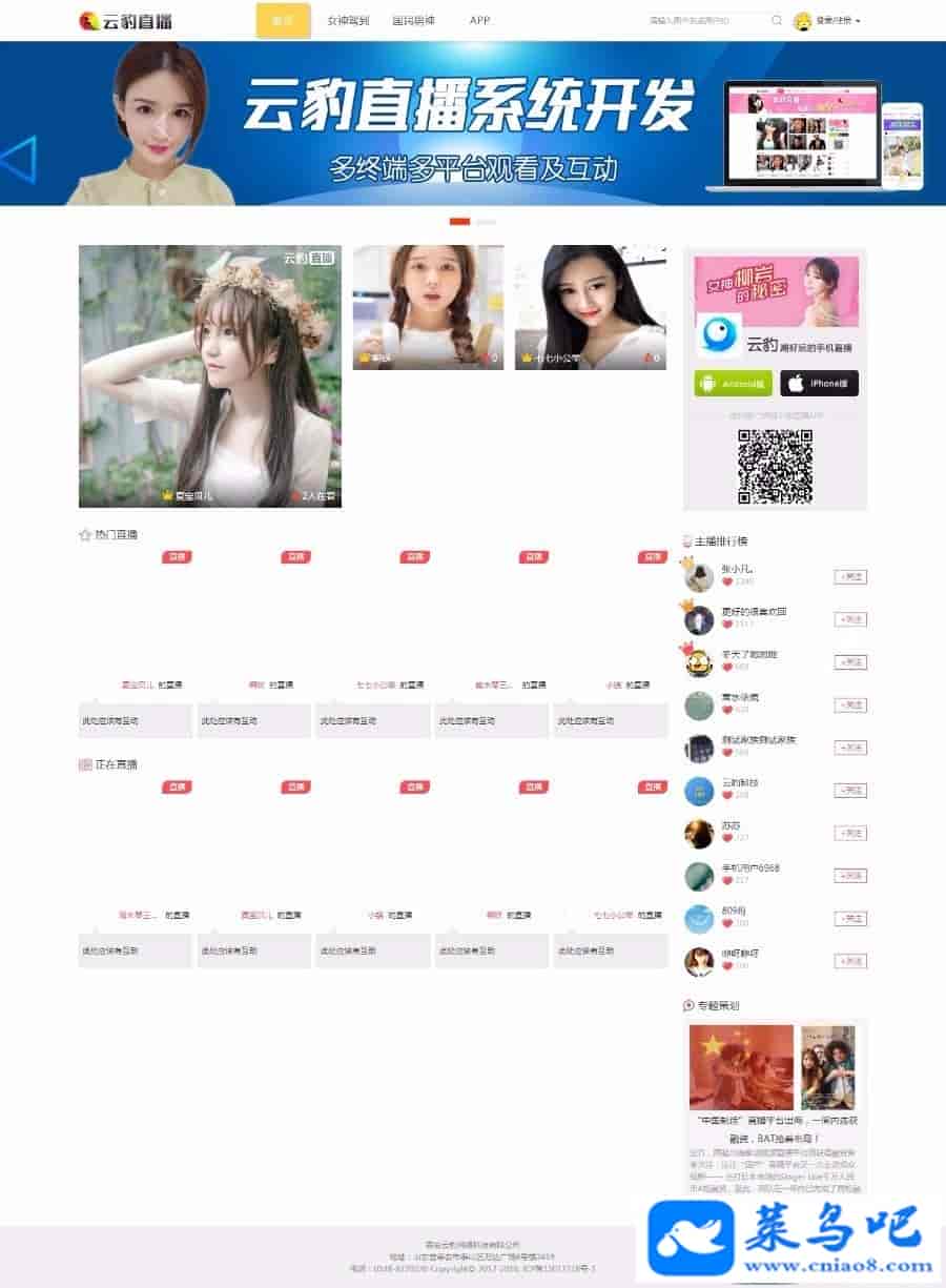 thikphp 最新直播网站源码,基于 PHP+MYSQL+FMS 开发手机直播功能,附详细教程等。囊括了目前市面上诸多平台的大部分功能,采用 thikphp 框架开发,还具有上手快、拓展性强的优点。