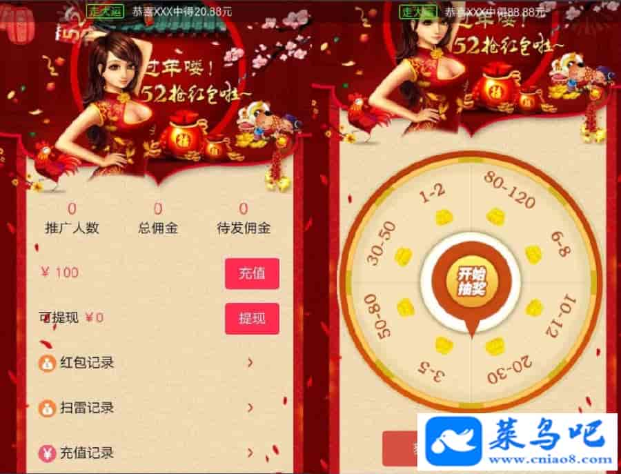 7、抽中红包信息可滚动显示、可添加虚拟信息。