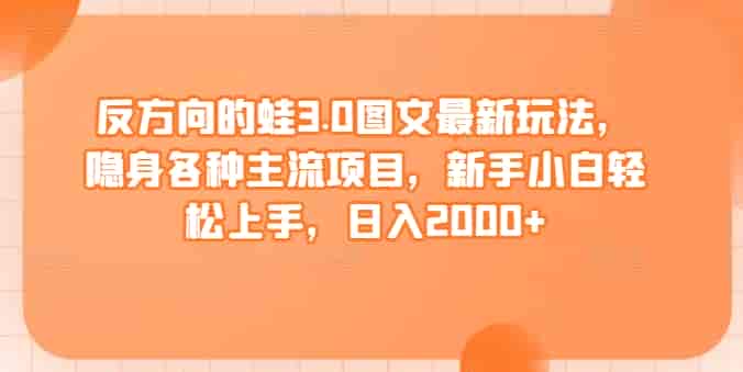 反方向的蛙3.0图文最新玩法,隐身各种主流项目,新手小白轻松上手,日入2000+【揭秘】